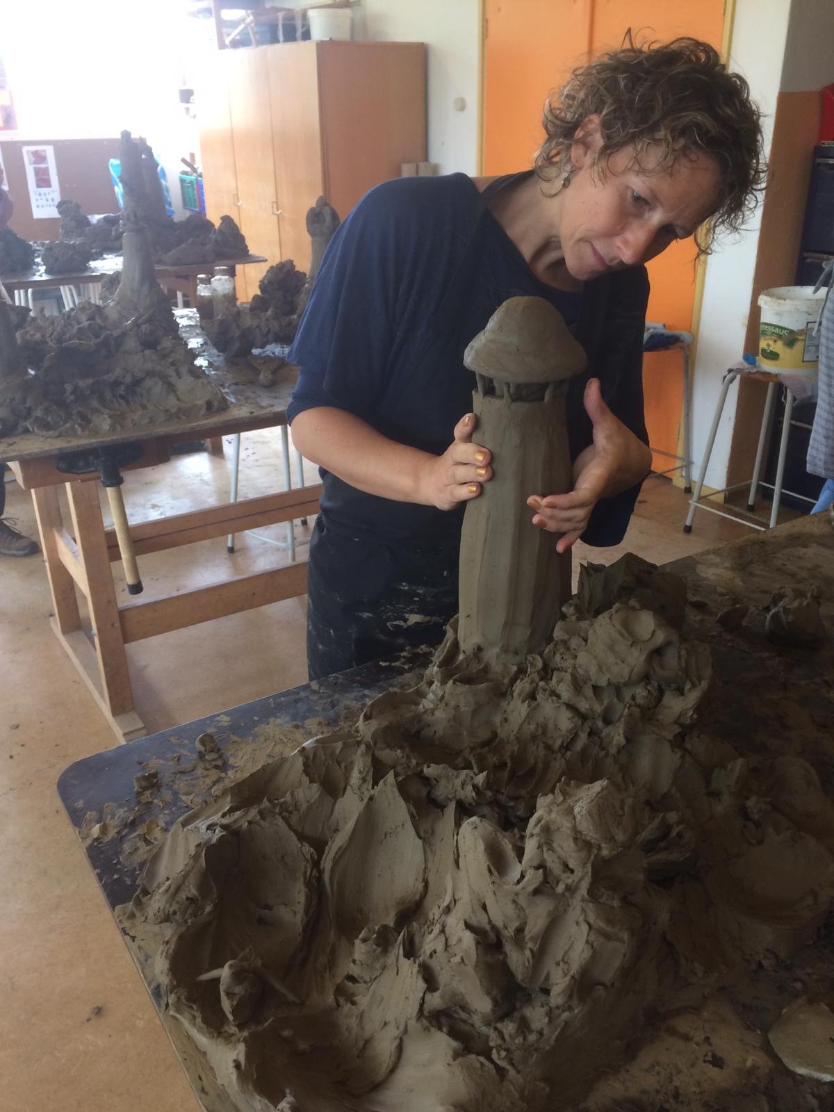 Groot boetseren is een zeer werkzame oefening voor beeldende therapie! Omdat het fysiek ook echt veel van je vraagt om vorm te geven aan de massa klei kan het je niet ‘onbewogen’ laten. Deze oefening van ‘vuurtoren plaatsen in een woelige zee’ is een prachtige oefening die ik leerde van Ulrikke Stokholm (Atka – Dornach – Zwitserland) en werkt eigen regieversterkend wanneer je overspoeld dreigt te worden door emoties! Ik heb het als vaktherapeut beeldend een aantal keer aangeboden aan cliënten en elke keer verbaasde het me weer hoe raak deze oefening is en hoeveel houvast men eraan ontleent.